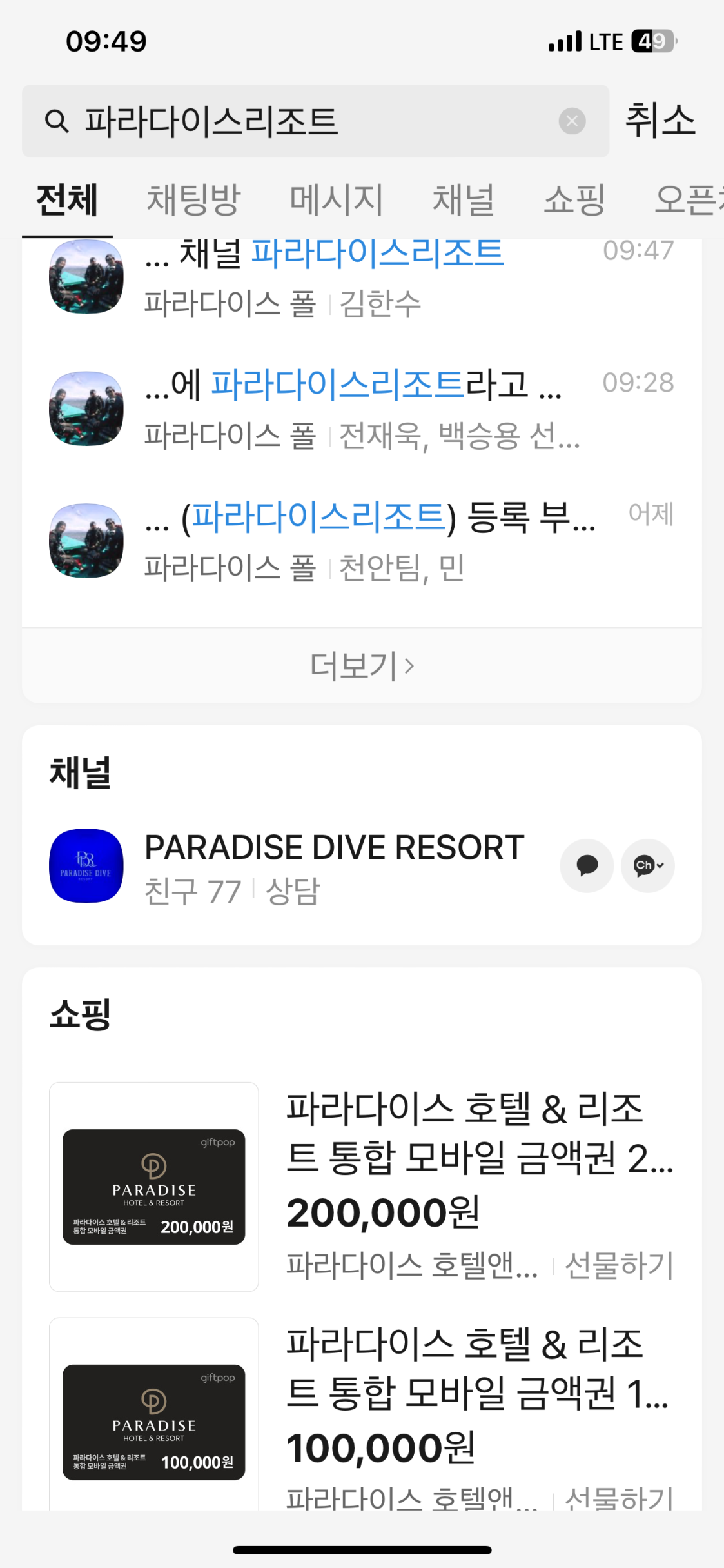 카카오채널 : 파라다이스리조트 (한글)